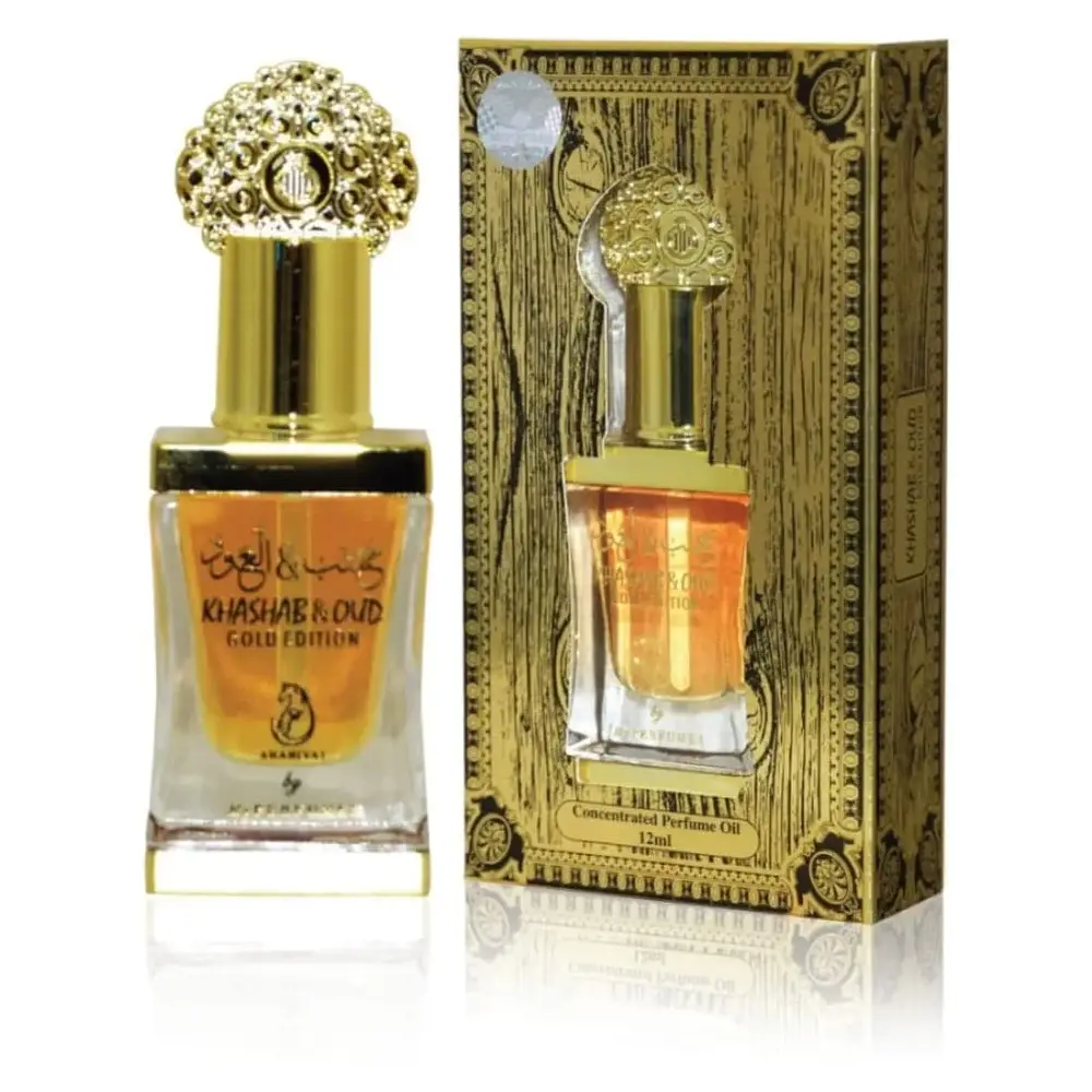 KHASHAB & OUD GOLD EDITION from ARABIYAT, Non Alcoholic Concentrated Perfume Oil or Attar for Unisex, 12 ml